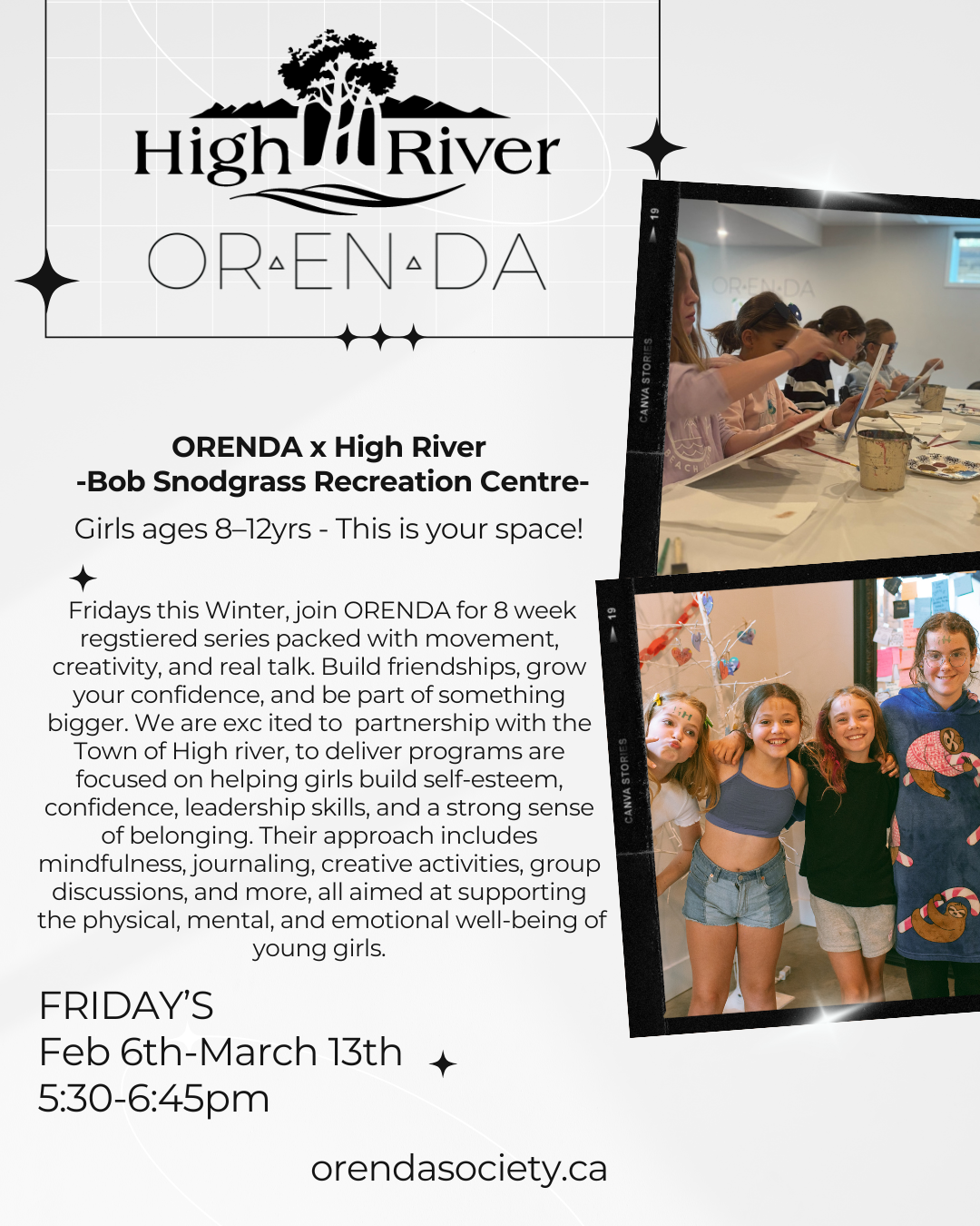 Offered in partnership with the Town of High River, this ORENDA initiative invites self-identified girls into a space where they are encouraged to grow with confidence, courage, and a strong sense of belonging.